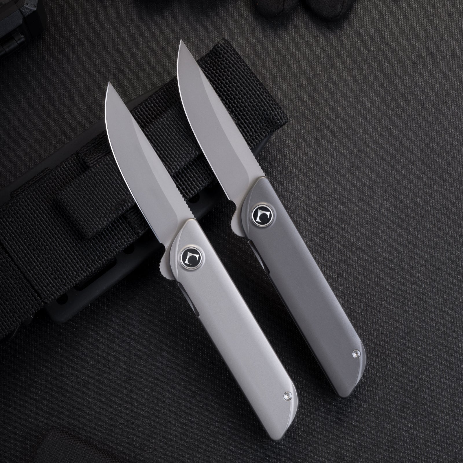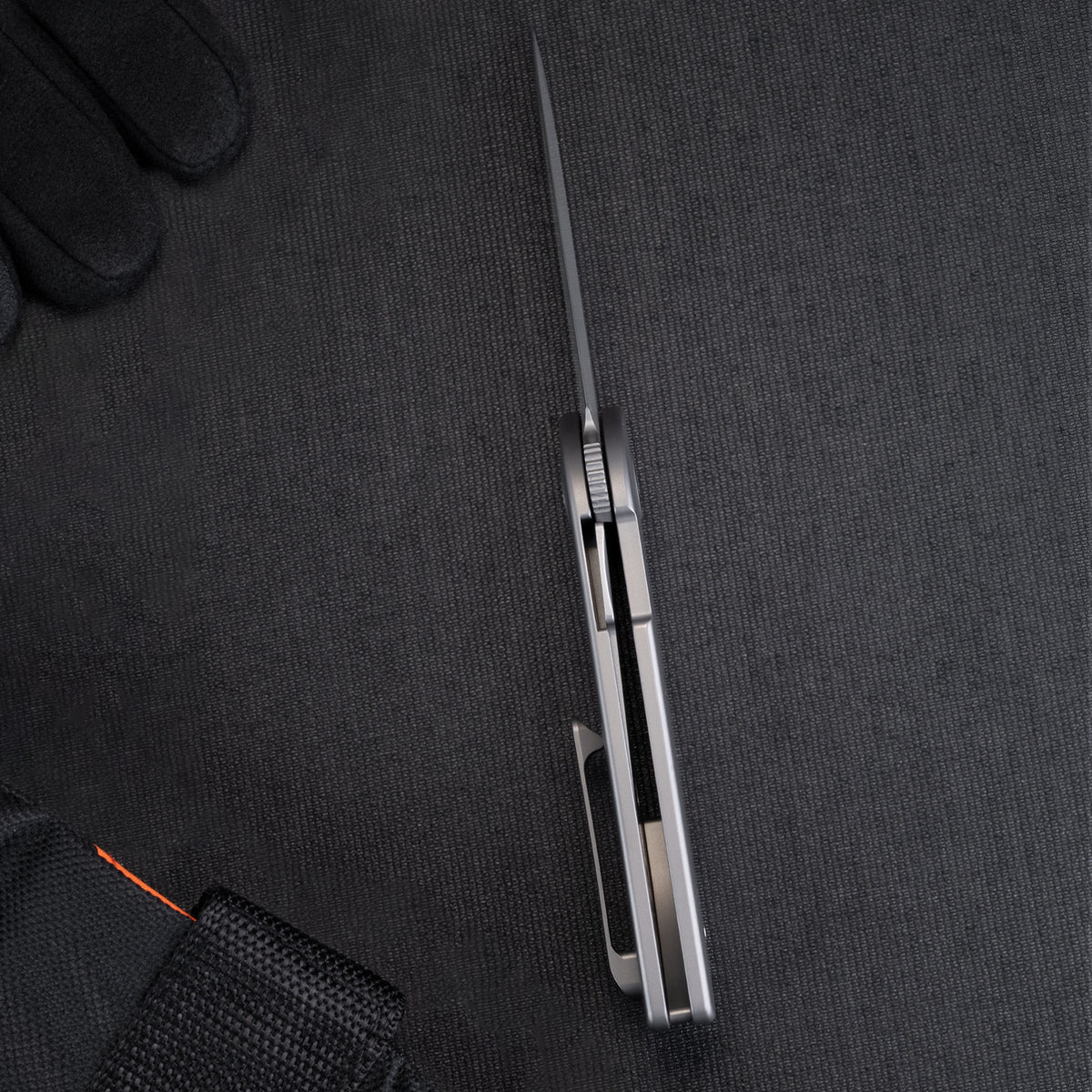KniClad Folison Folding Pocket Knife and Dark Gray Titanium Handle Liner Lock (3.0" 14C28N Blade) CNYYVGT-15