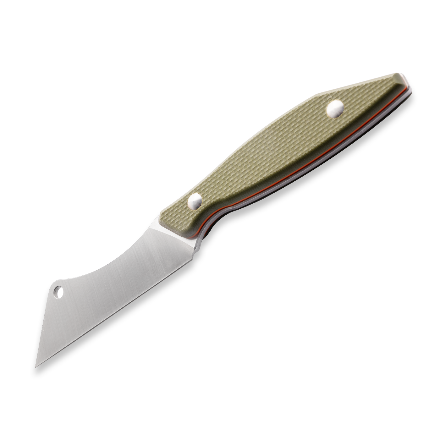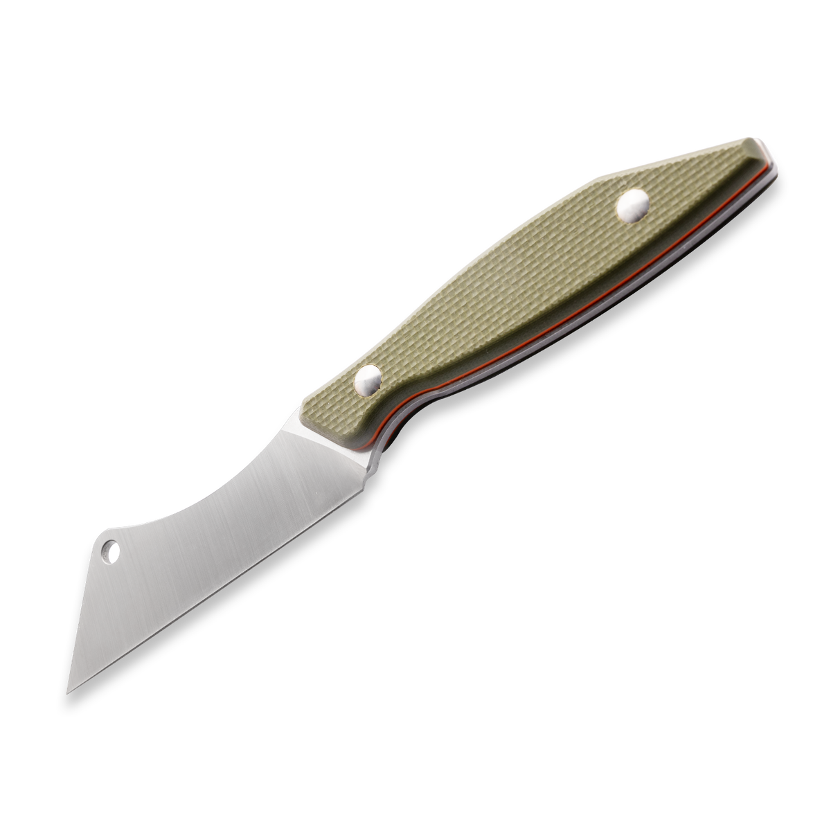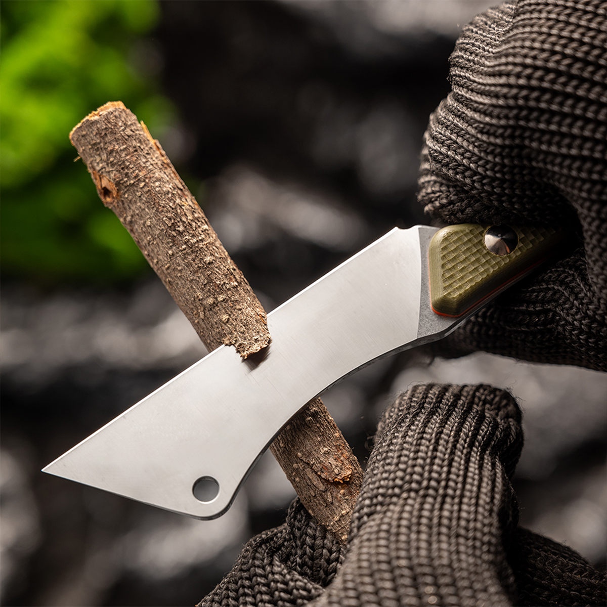 Featuring a textured green G10 handle that blends into natural environments while providing a non-slip grip. The aggressive texture ensures full control even with wet hands or gloves.