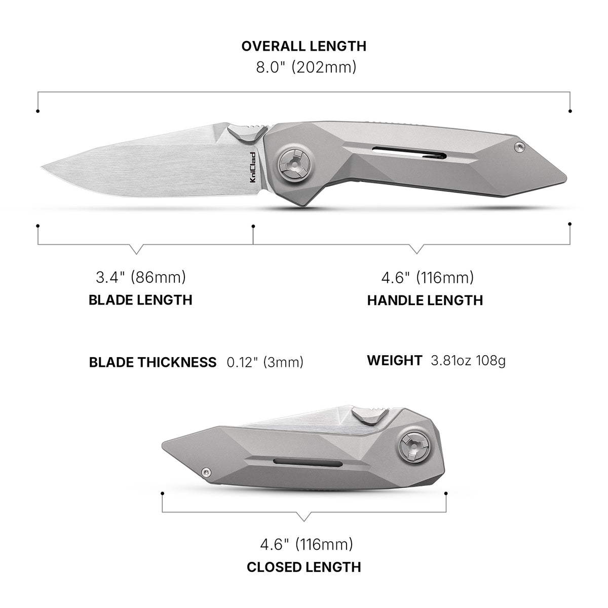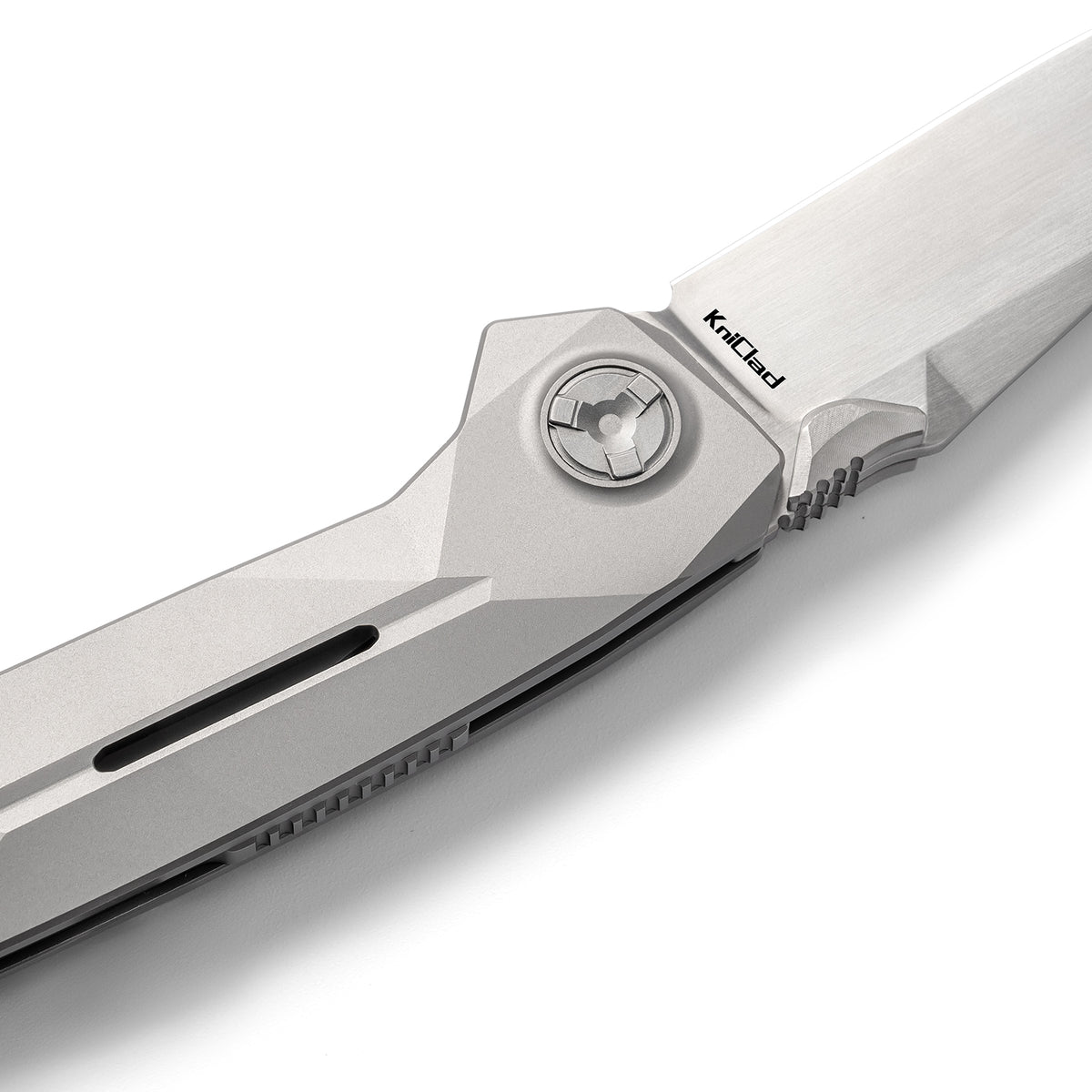 Kniclad Summit Silver Titanium Geometric Handle Liner Lock Pocket Knife (3.4" S35VN Blade) K002-1