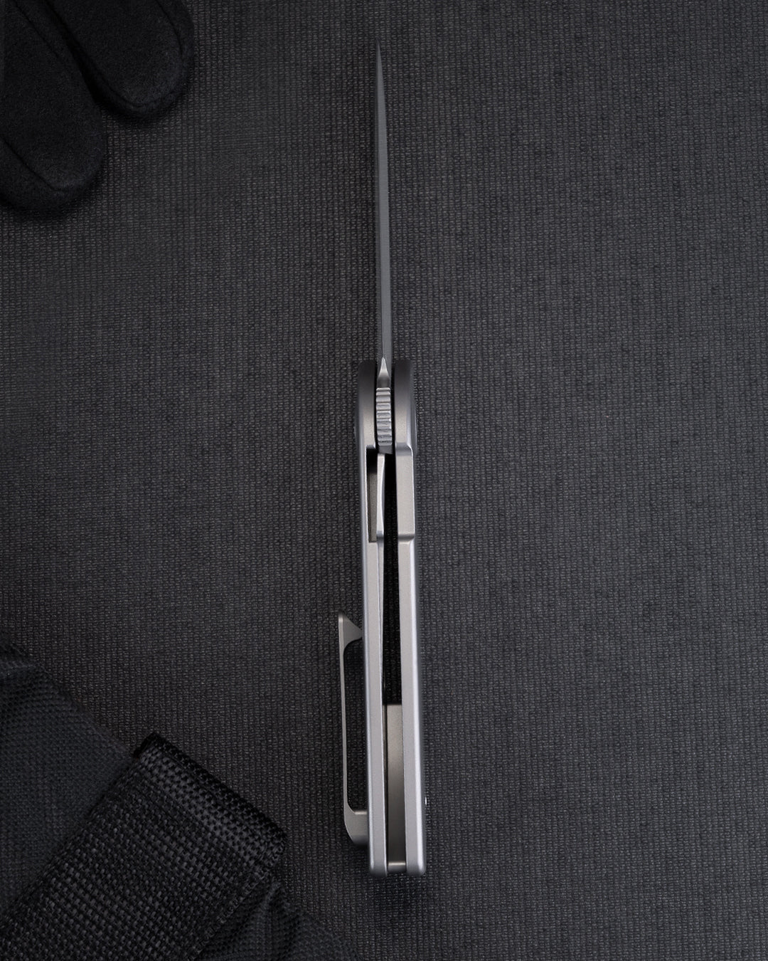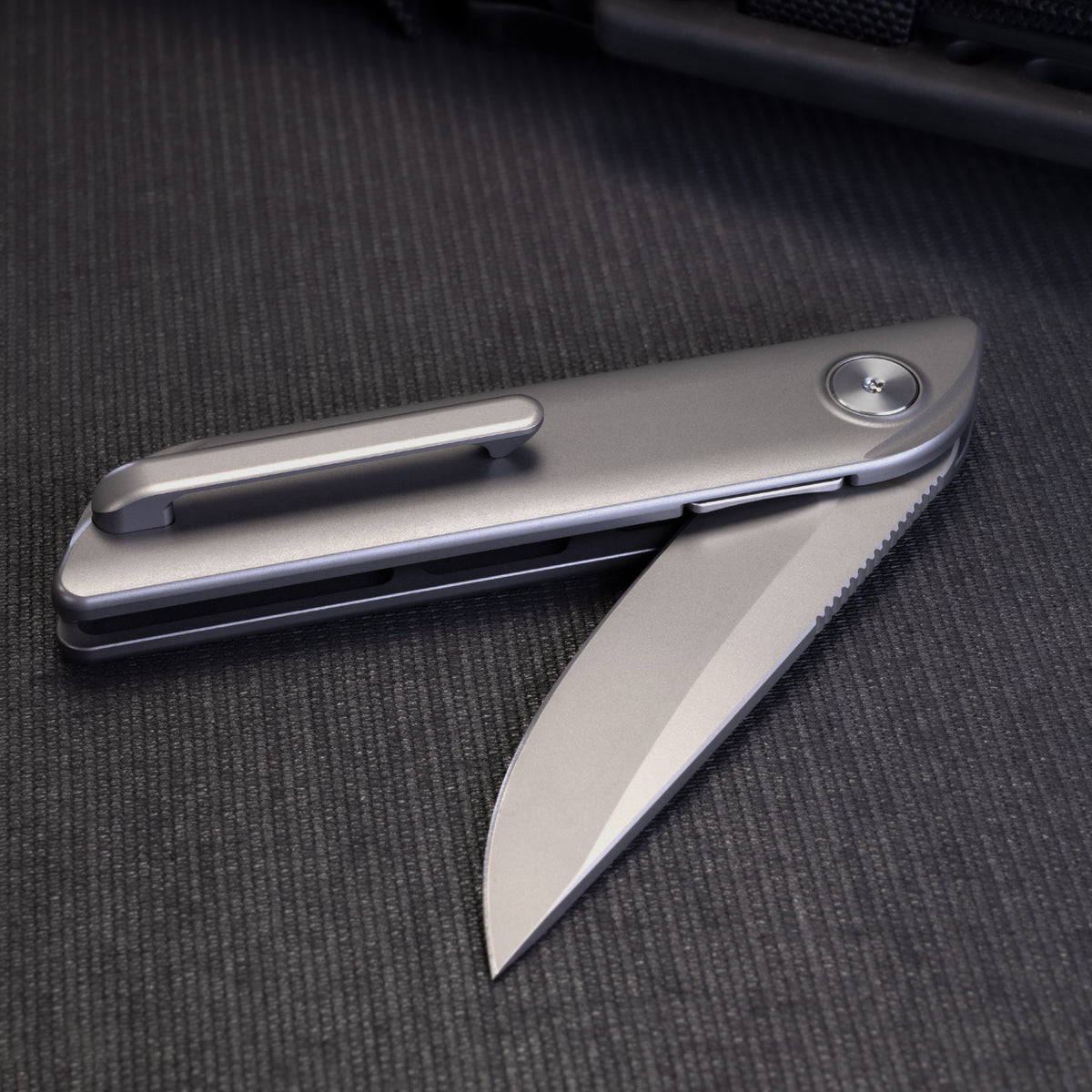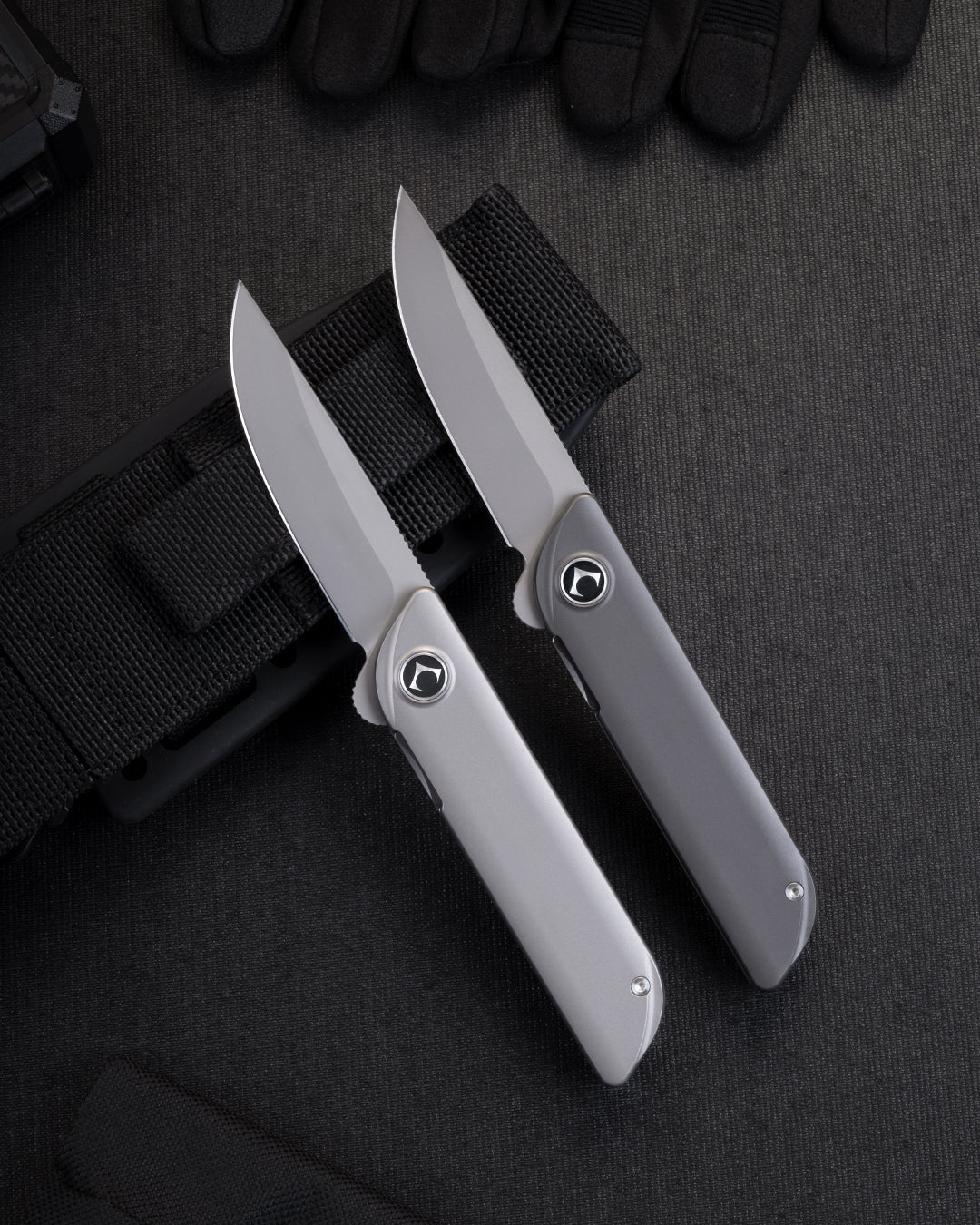 KniClad Folison Light Gray Titanium Handle Liner Lock Folding Pocket Knife (3.0" 14C28N Blade) CNYYVQT-15