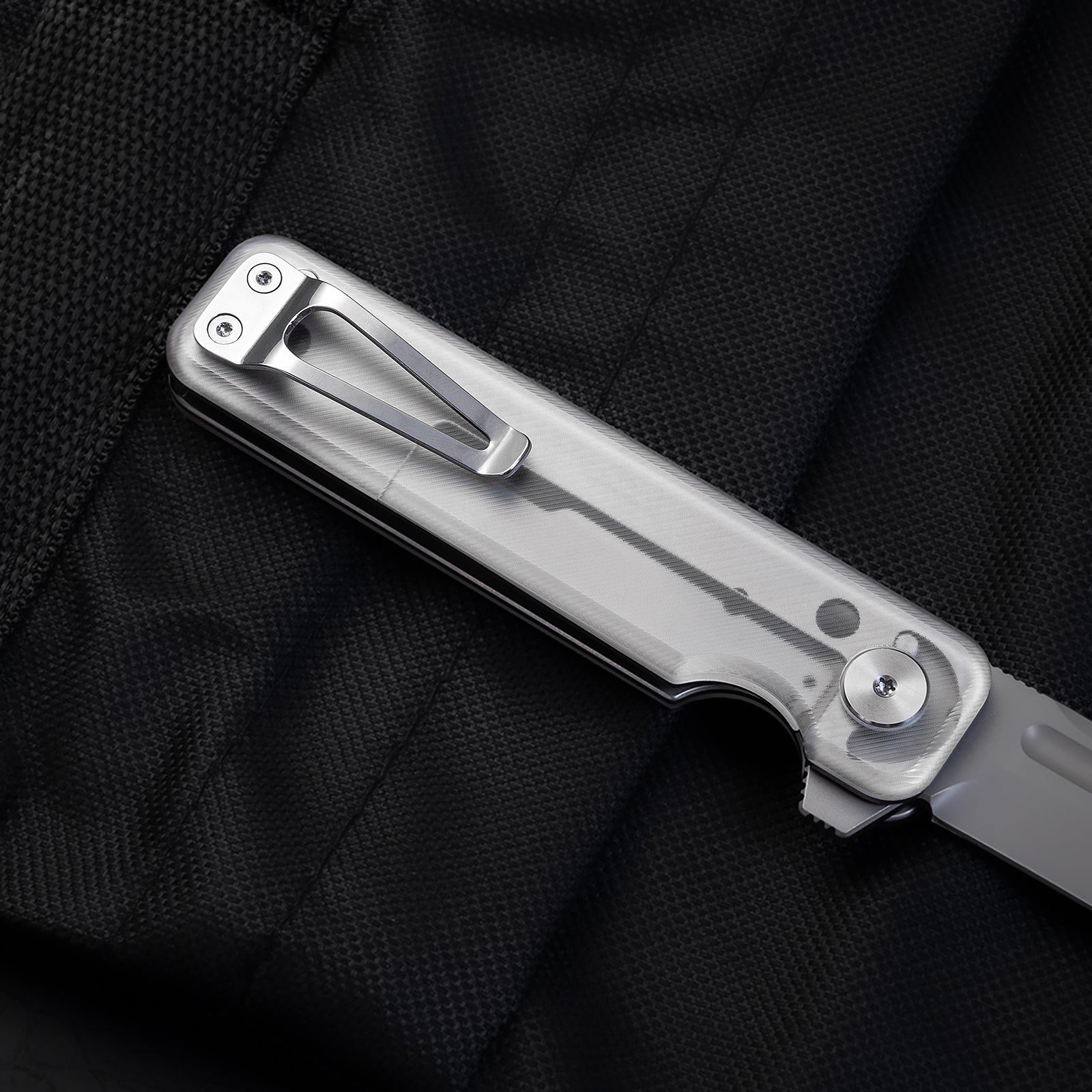 KniClad Mondry Transparent Acrylic Handle EDC Knife Liner Lock (3.0" 14C28N Blade) CHMDLVY-15