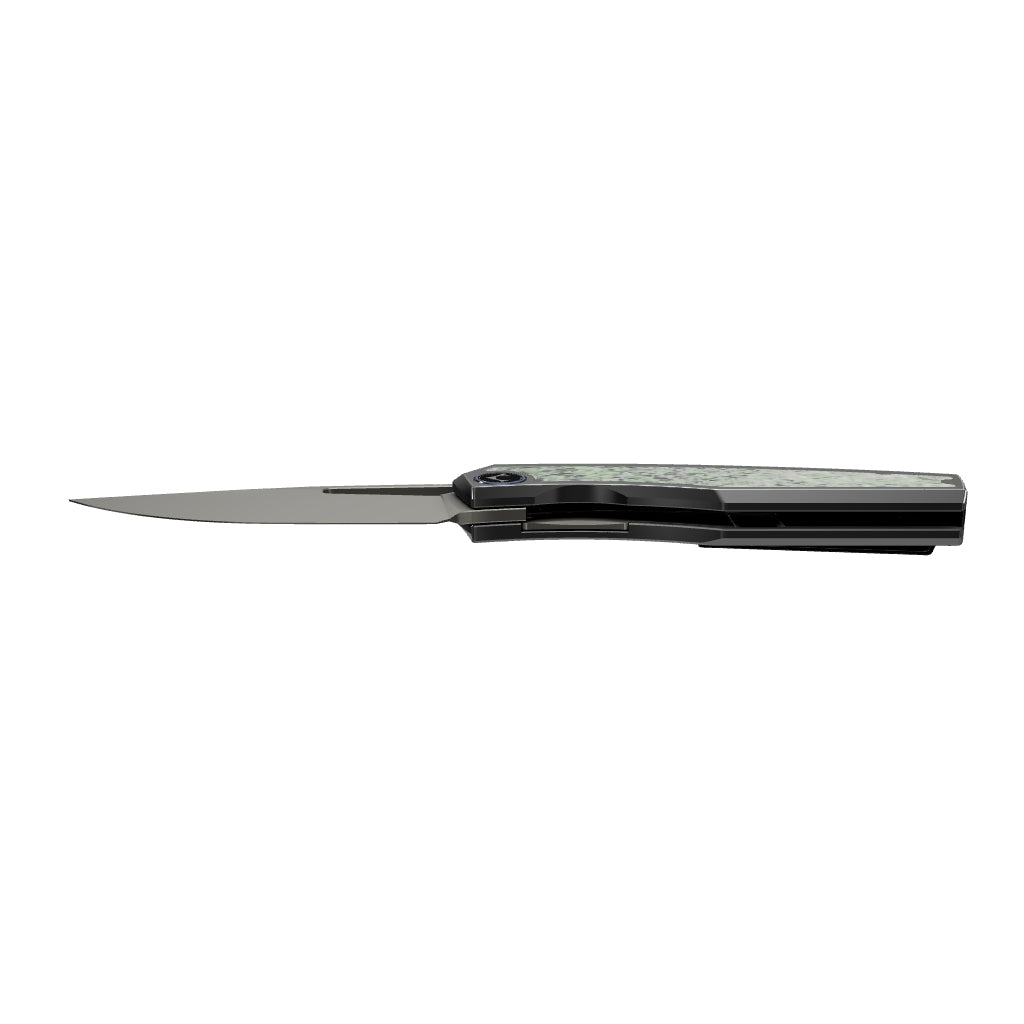 KniClad Mowell EDC-Messer mit grünem Griff aus Kohlefaser und Liner-Lock (3,5" Klinge aus 14C28N) CHMWVSTG-15