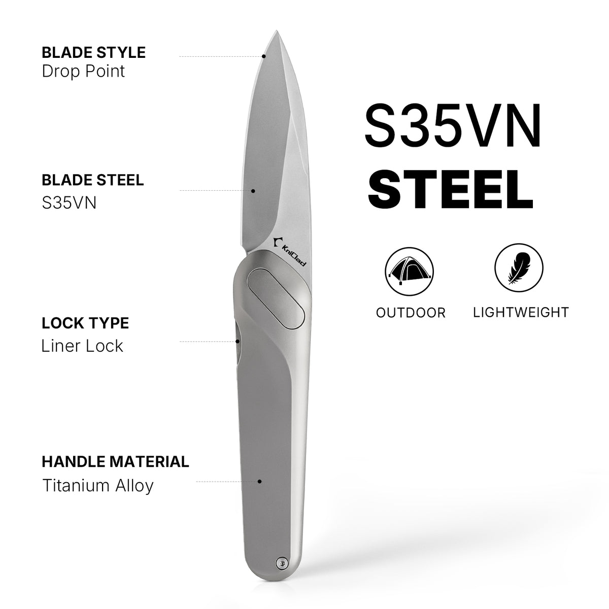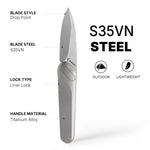El duradero clip de bolsillo de titanio ofrece un transporte discreto y cómodo, lo que hace que este cuchillo EDC sea práctico y accesible para las tareas diarias.