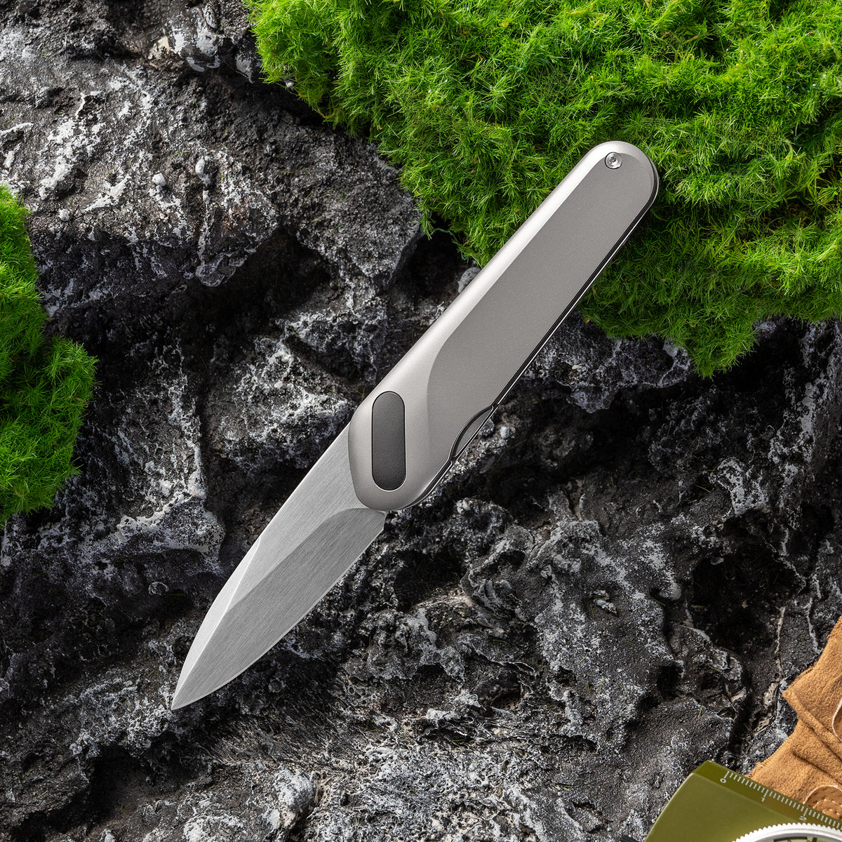 KniClad Ginren Titanium Handle Liner Lock Light Gray Folding Knife (3.0" 14C28N Blade) CNJRVLT-15SG