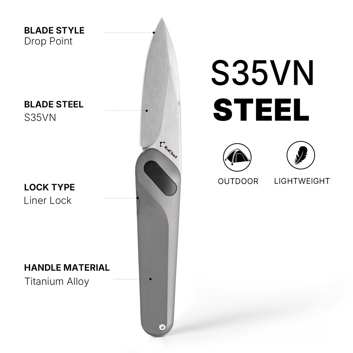 Kniclad Ginren Dark Gray Titanium Handle EDC Knife with Black Detachable Magnetic Small Cube (3.0" S35VN Blade) K001-1