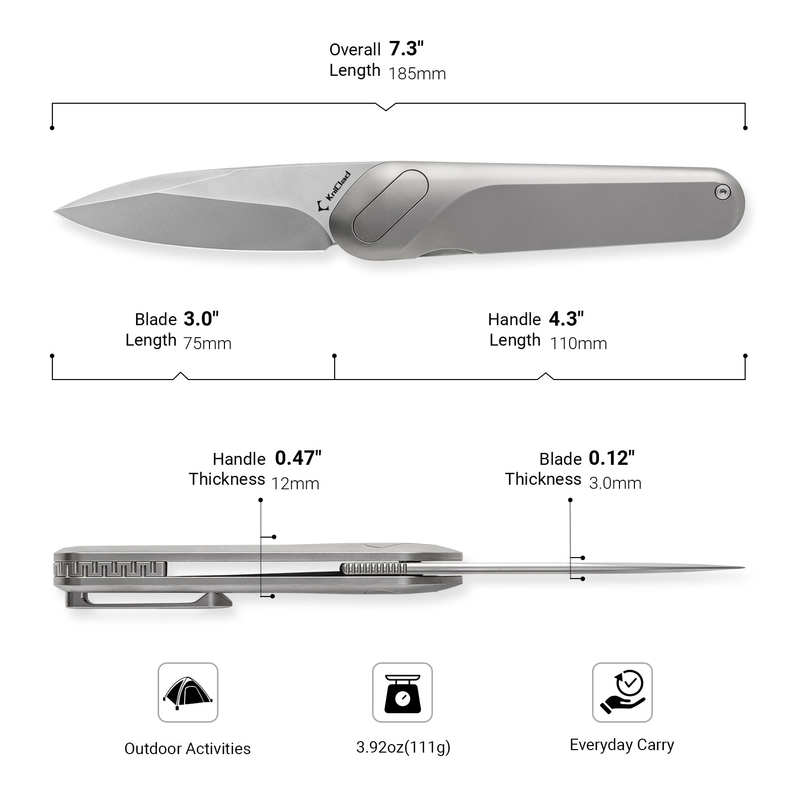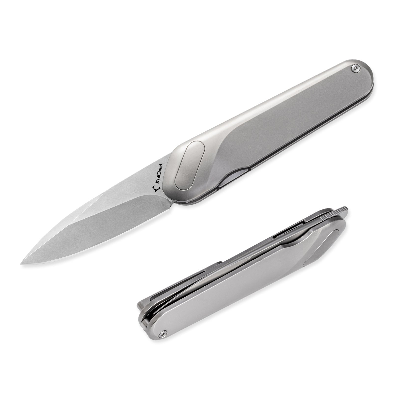 Kniclad Ginren Silver Titanium Handle EDC Knife with Detachable Magnetic Small Cube (3.0" S35VN Blade) K001-2