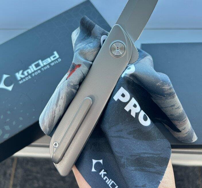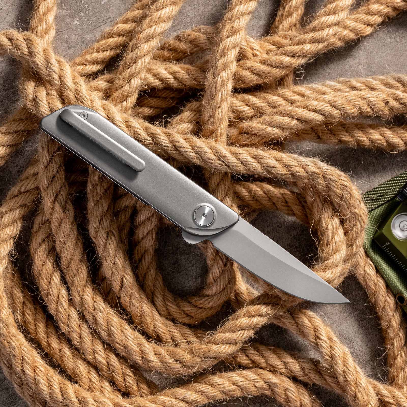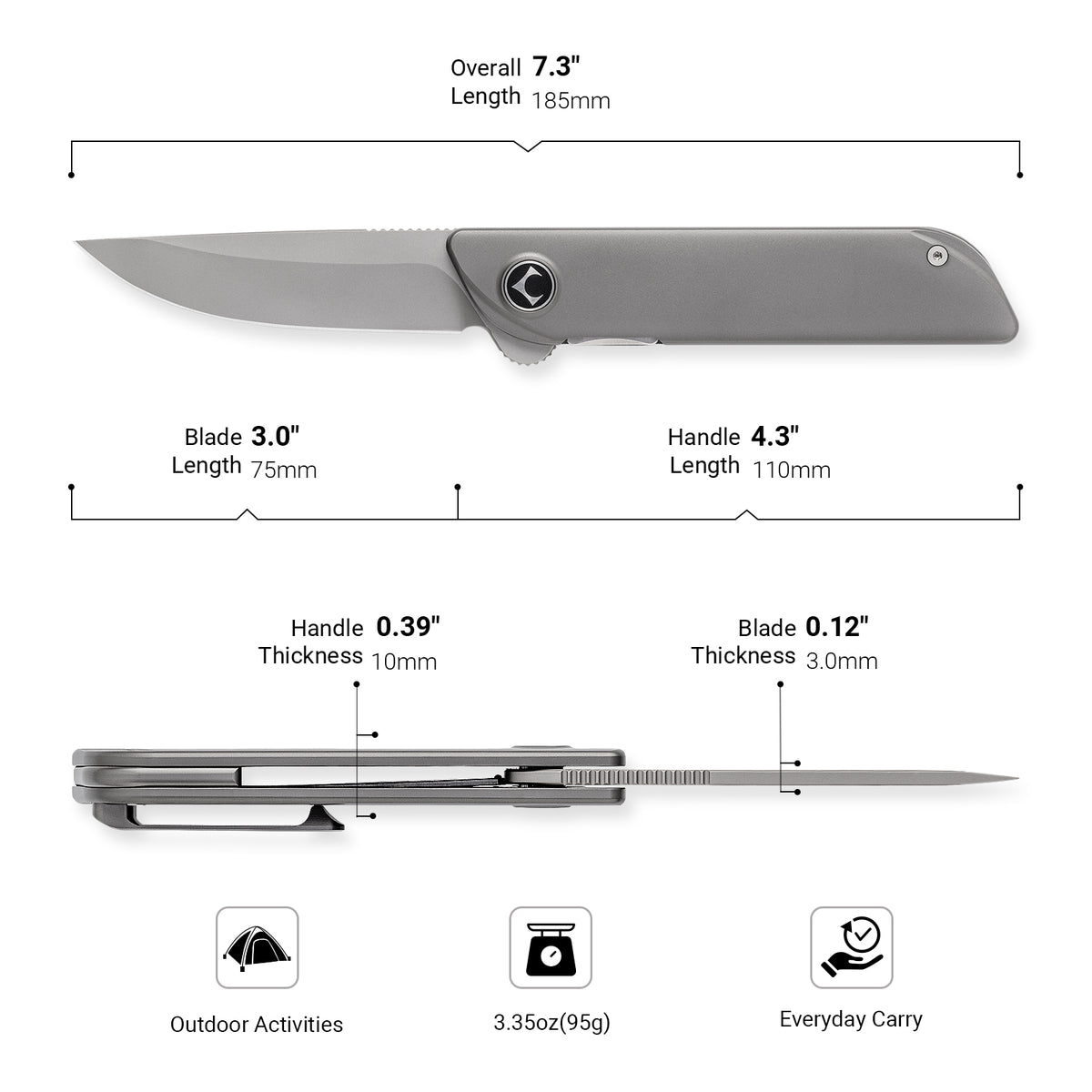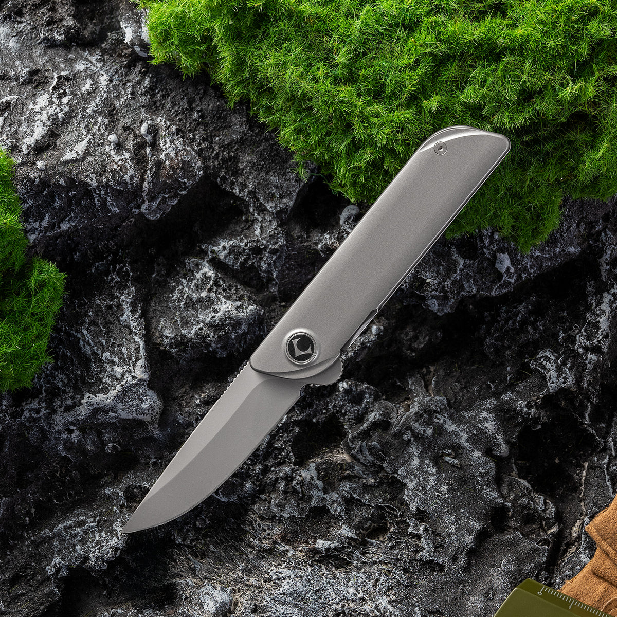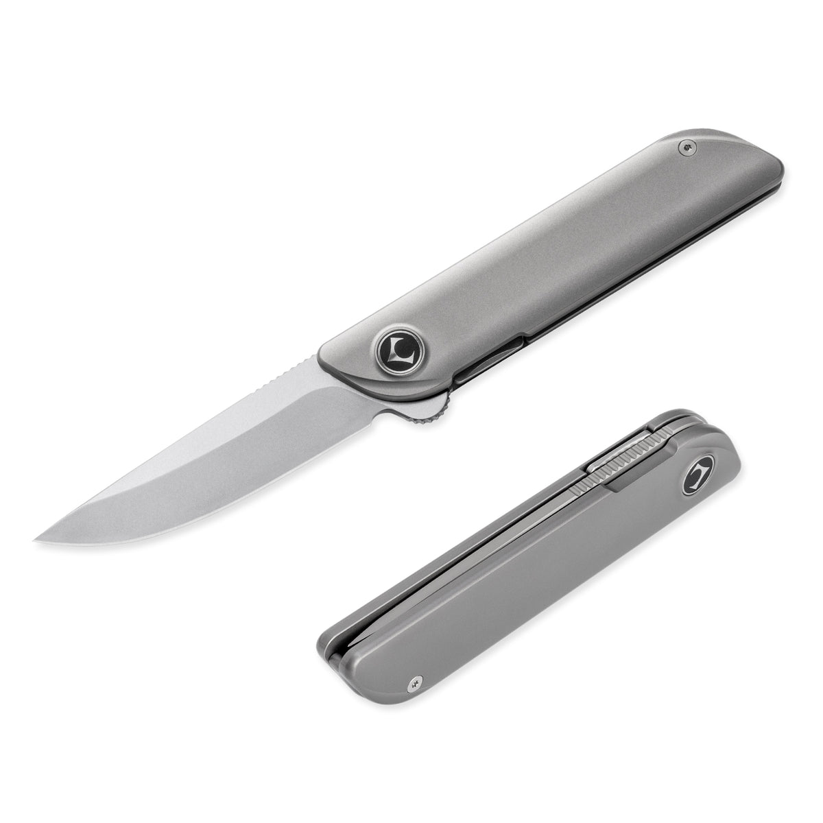 KniClad Folison Folding Pocket Knife and Dark Gray Titanium Handle Liner Lock (3.0" 14C28N Blade) CNYYVGT-15