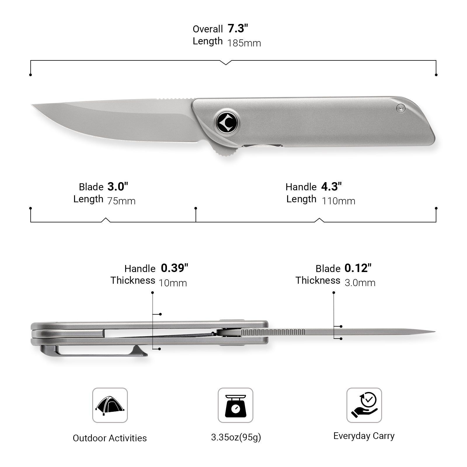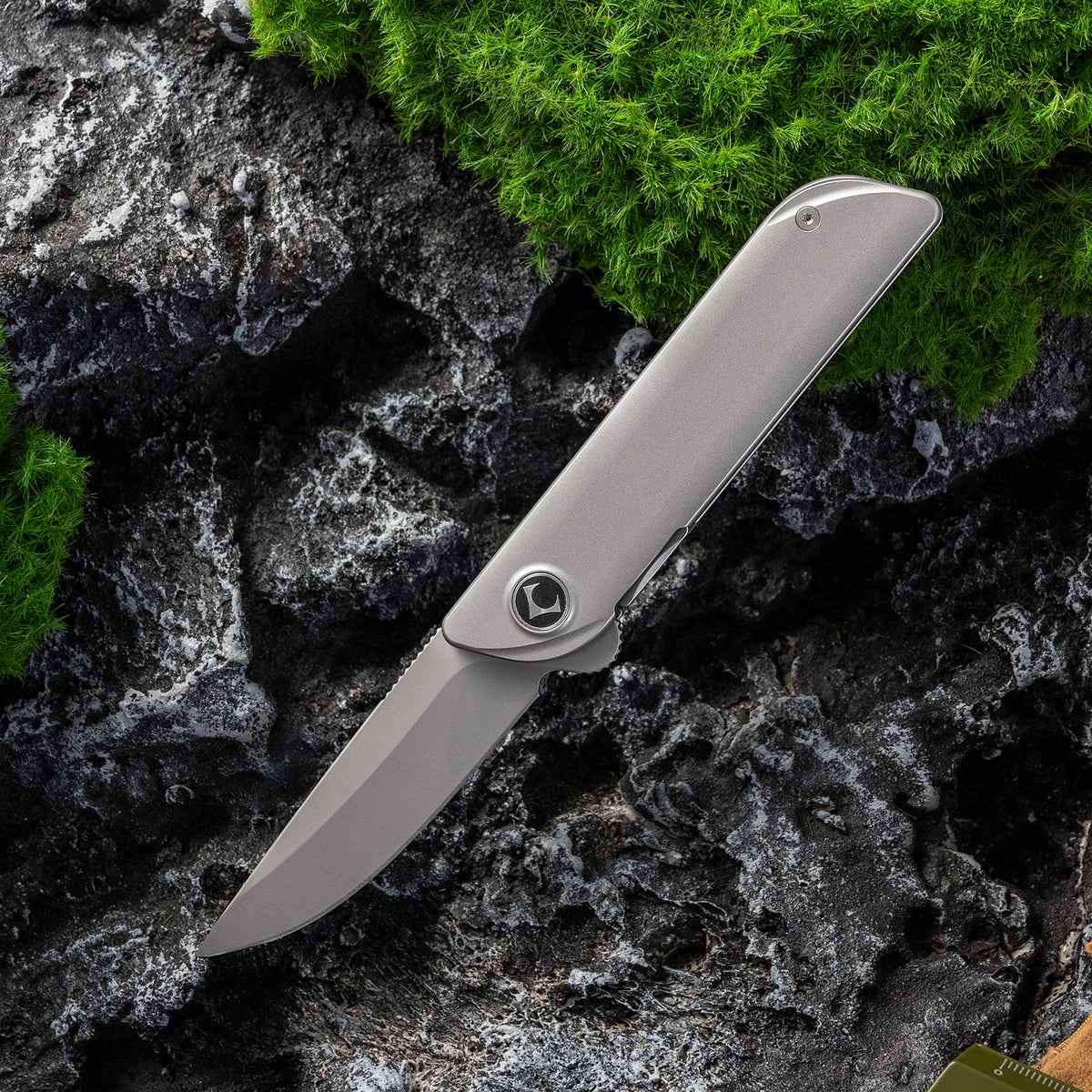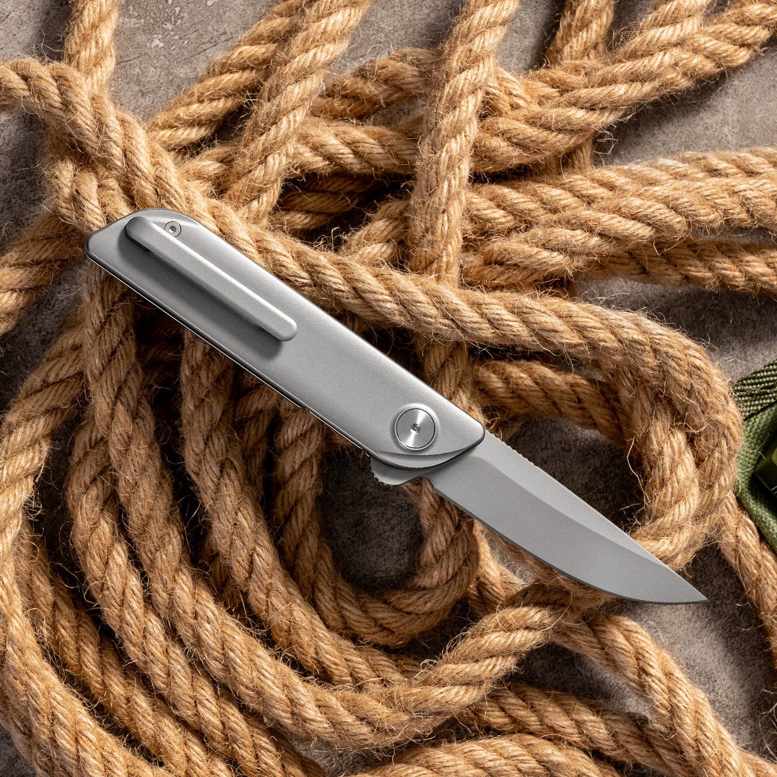 KniClad Folison Light Gray Titanium Handle Liner Lock Folding Pocket Knife (3.0" 14C28N Blade) CNYYVQT-15