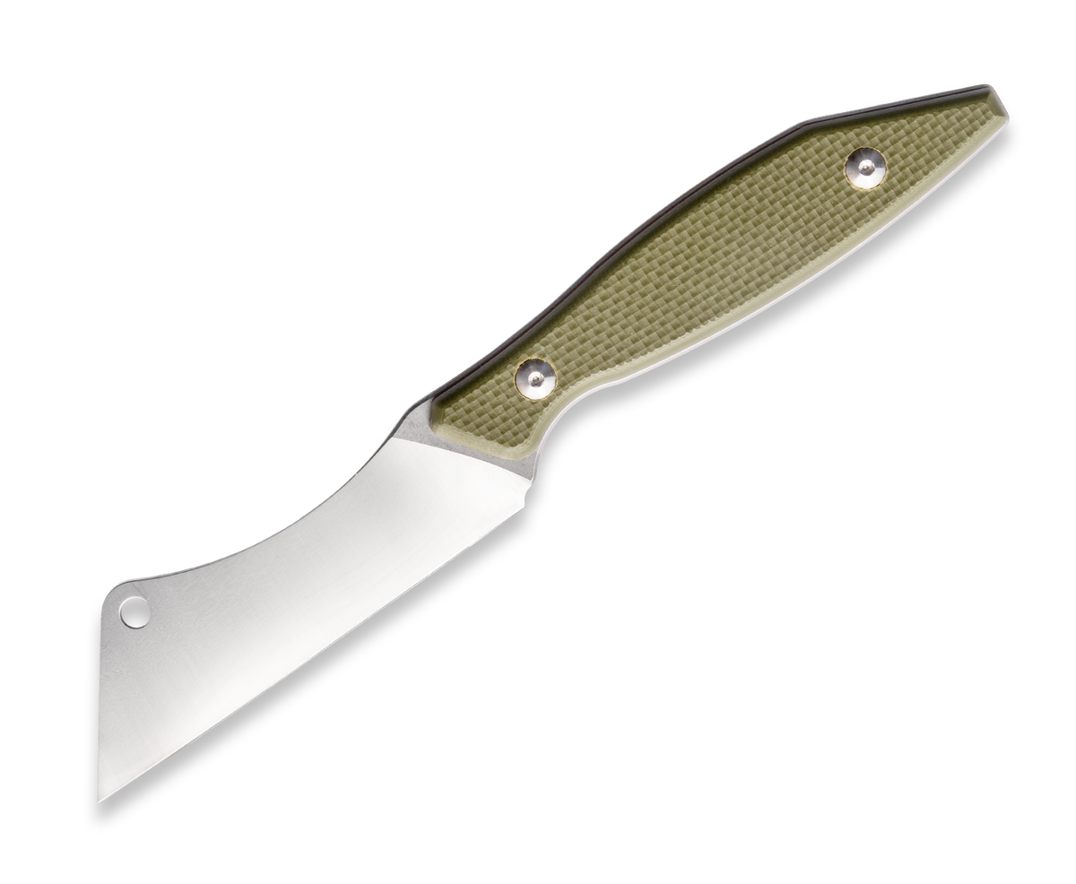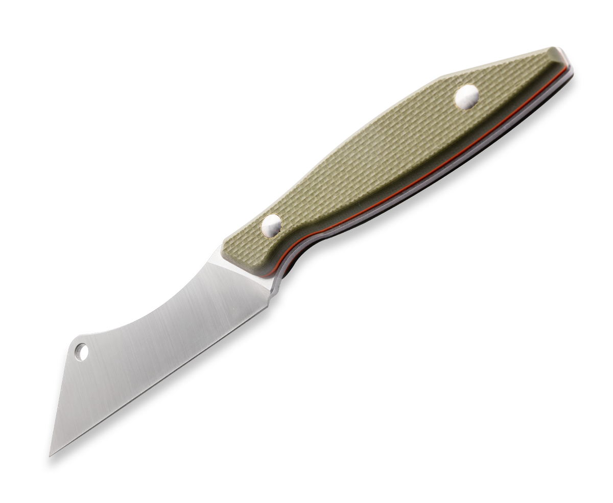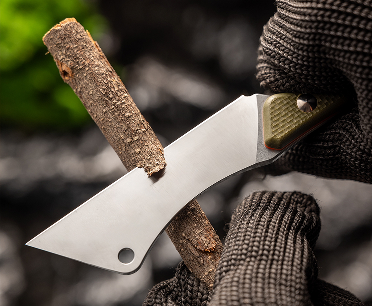 Featuring a textured green G10 handle that blends into natural environments while providing a non-slip grip. The aggressive texture ensures full control even with wet hands or gloves.